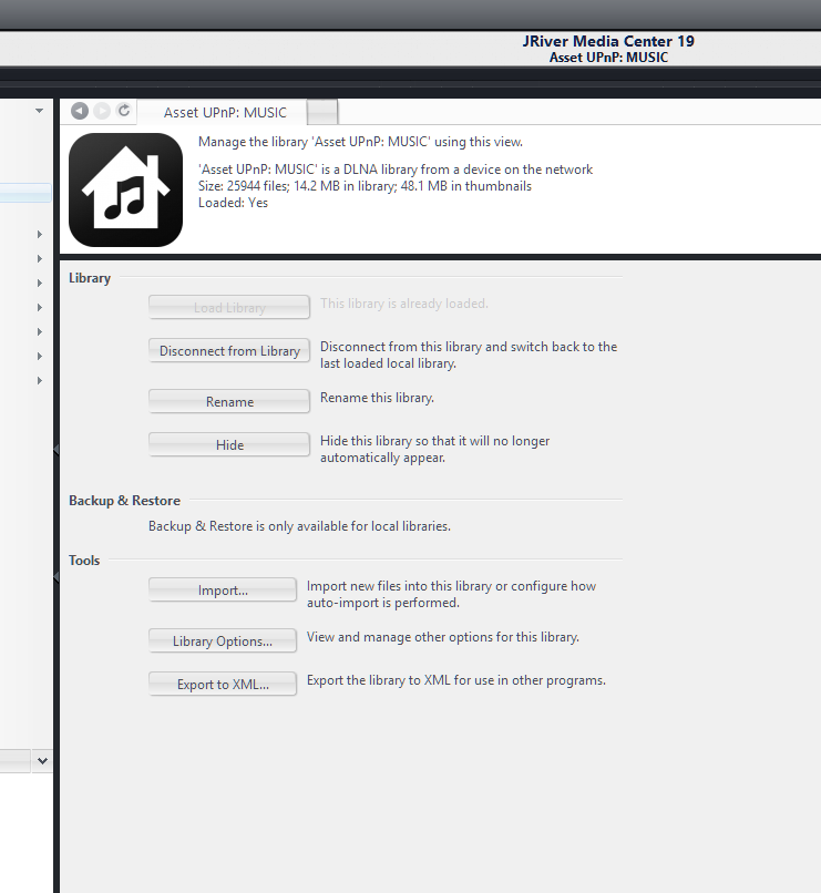 On the loading of tracks through Asset to Jriver 19, using folders 1 at a time A-Z: got to about 46,230 (of 69,000) then stopped loading. Kept adding folders - but Jriver never got any more tracks come through.