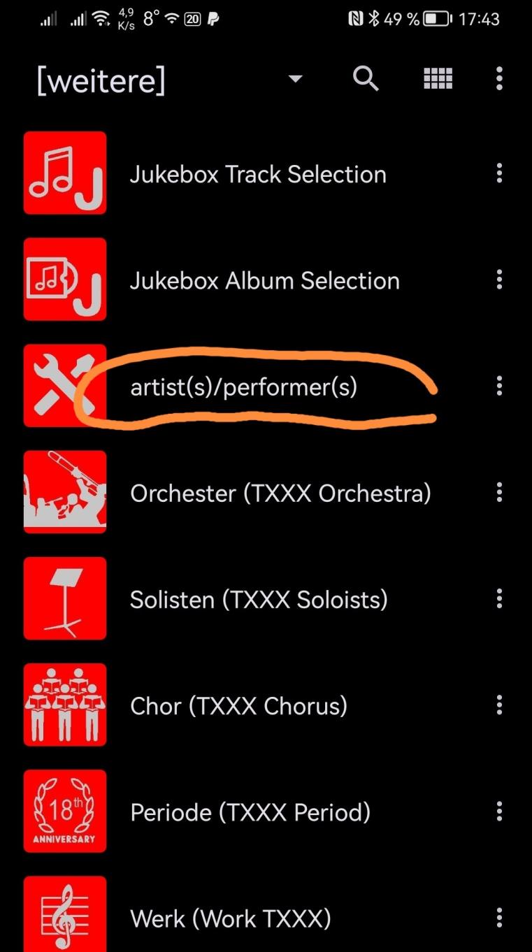 The container for ORIGARTIST (TOPE), called 'artist(s)/performer(s)', is definitely empty even after scanning (at least nothing is displayed). Every other custom container I create shows its contents immediately. So I'm not making a mistake (I hope so).
