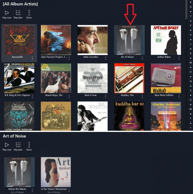 I have a problem in searching Album Artist/Album (Advanced Search) because only one album from an artist is displayed. When I click on this, the others are shown.