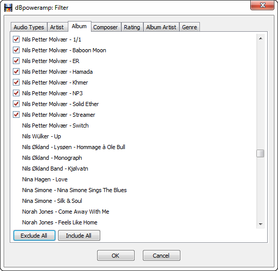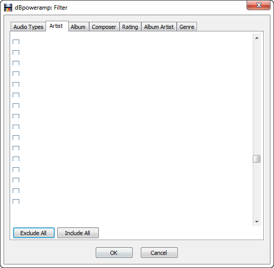 A bigger problem exists in the filter section. The lists with the checkboxes in the filter dialog are scrambled in case of long lists. Initially only half of the list entries have a checkbox in the front, the rest just an empty space - no checkbox at all. If you click include or exclude all, the list scrambles even more (checkboxes but no list entries, vertical offsets between checkbox and list entries). Please have a look at the screenshots.