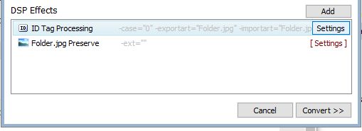 First screenshot, as you can see, is my ID Tag Processing options. The second screenshot is my DSP Effects.