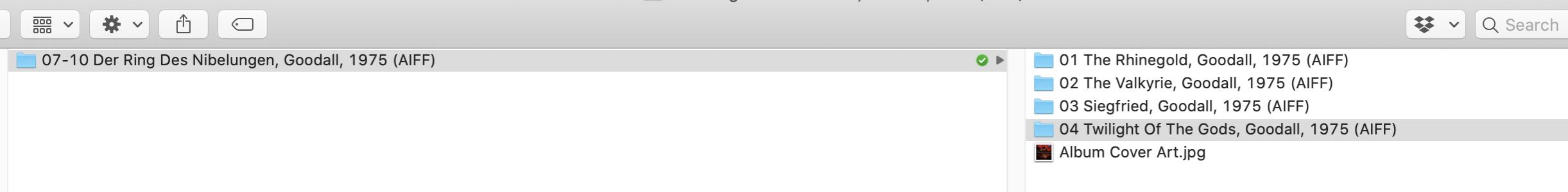 In this particular instance, I have a complete Wagner Ring Cycle in 4 separate folders, all within a main folder: