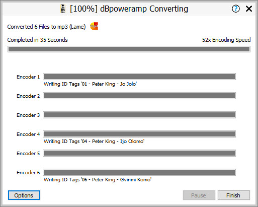 Using release 17 64-bit. When I do use either Batch Converter or Music Converter, the conversion window displays that one or more Encoders are still writing tags, although the Finish button is active. I've let the window sit for several minutes and the Writing ID Tags message(s) never seem to clear. I have attached a capture of the window.