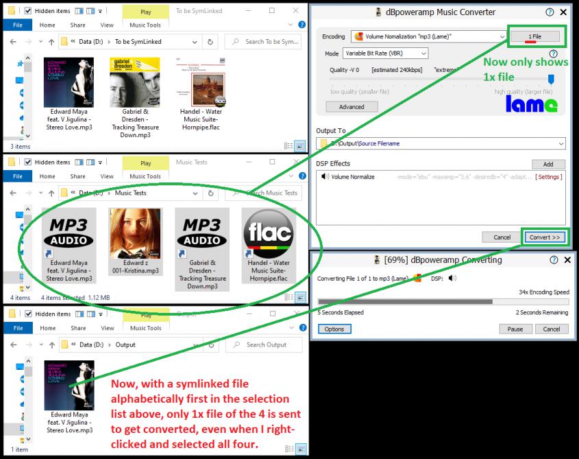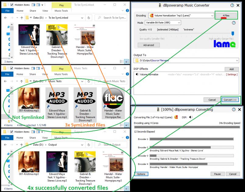 I've been trying to batch convert Windows 10 Symbolic Linked music files.