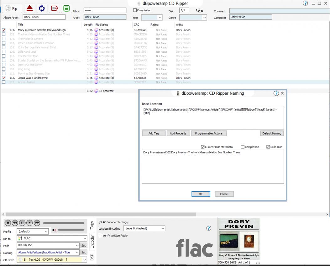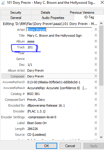 See – Dbpowerampviewreadytorip – Track numbers offset and information reduced to minimise any error risk and the tag string is as shown.