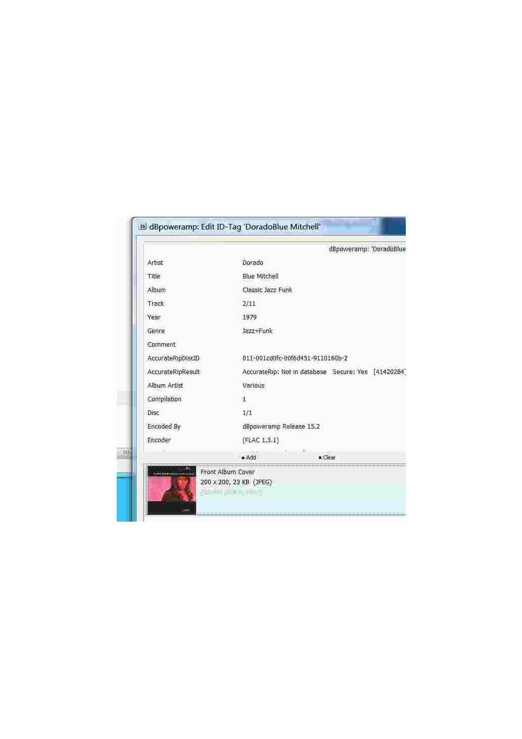 The image is of a cd cover. NOT for those files.There homemade cd ripps-so should have no cover.I do Know the cover& the cd-but tracks have been deleted.-But maybe the image is still in P.C..?If theres any software to scan artwork in p.c-let me know.