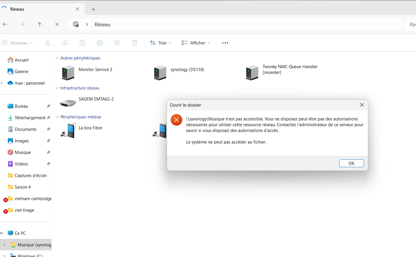 but, If I select the Synology on the network in the windows explorer, I can acces to the CD ripped..