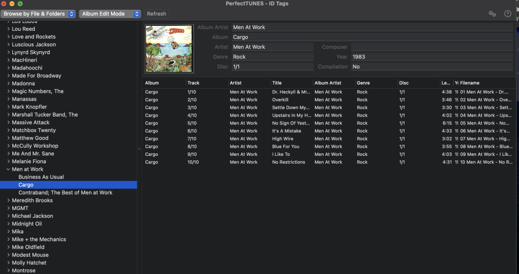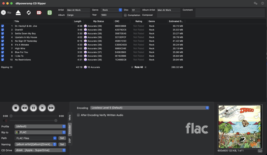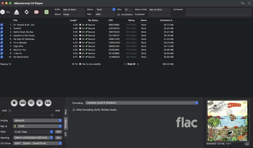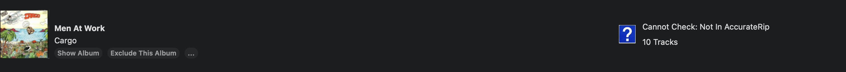 Please look at tags of your Men at Work - Cargo rip, post values of AccurateRipDiscID tag present in your files, so I can compare against my CD.