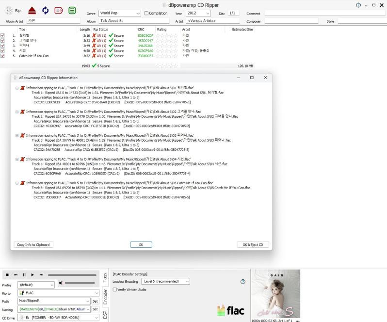 I've ripped about 50 other discs with the Pioneer so far and it's had perfect rips of just about everything else (I do have one other kpop CD where nothing could rip the very last track properly on a full disc despite no visible damage, dirt, scratches, or manufacturing defects but I assume it was just a bad pressing - I let it go for over 16 hours once but it still failed to rip that very last track properly).