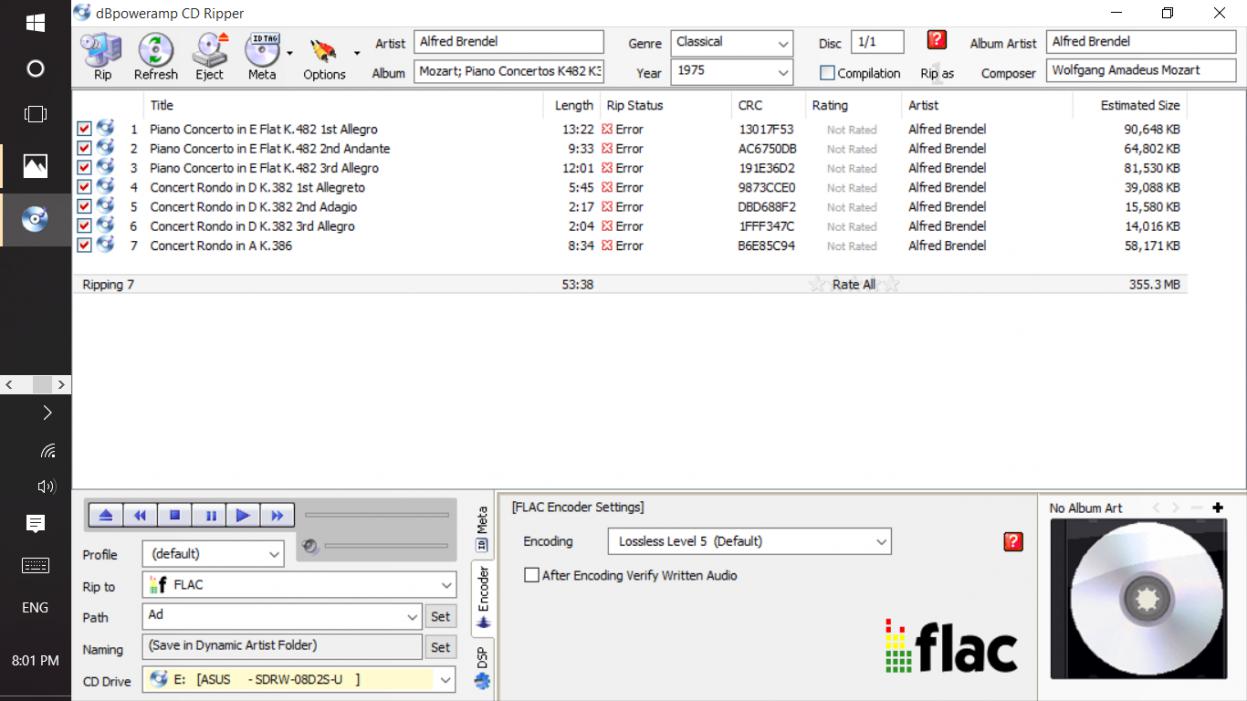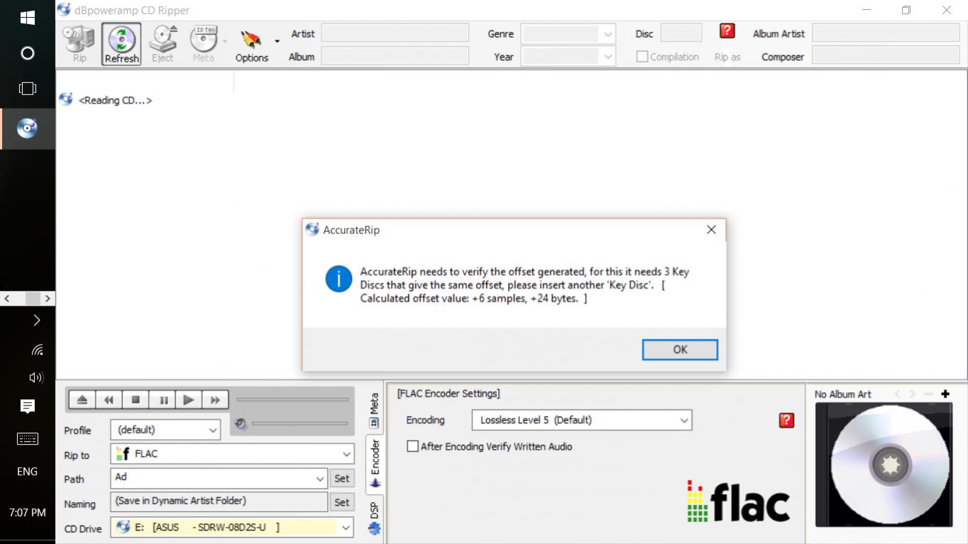Hi! I've bought a new DVD-ROM. Before I rip again I set up the configuration according to dBpoweramp CD Ripper Setup Guide. I click NO in response to the configure window before it rips the song. All rips end with "xError". Please advise.