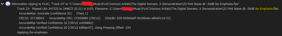 I have a few CDs with pre-emphasis that I am trying to figure out the best practice for ID tagging them. I see that in the ripper settings dBpoweramp gives the option to add ID tags for tracks marked with pre-emphasis. If de-emphasis is checked and applied while ripping, is the pre-emphasis ID tag necessary? I'm curious if this could lead to an instance where a media player that can read ID tags sees the pre-emphasis tag and applies de-emphasis a second time.