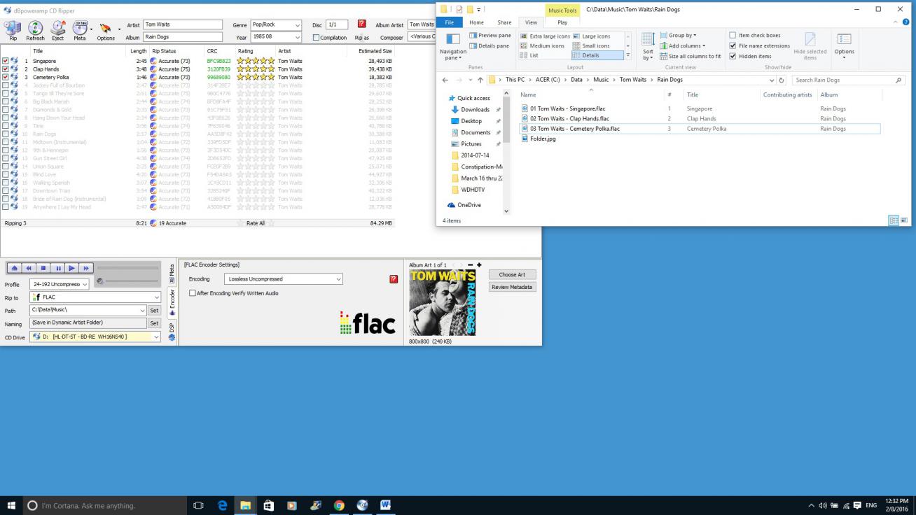 I ripped the tracks with a compression setting of 8 and they are about 20% of the size of the ones with the uncompressed setting.odd, as a noncompressed FLAC created with dbpa should be much larger (about twice as large) as one with compression set to "8". Not sure what could be causing this and whether it is actually the ripping that is the problem or the "reporting" of size in Windows 10. Try ripping to uncompressed and then to "8" level (same track) and compare the file size in win10. What's the difference?Comment