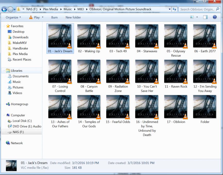 Information ripping to FLAC, 'Track 17' to 'F:\Plex Media\Music\M83\Oblivion; Original Motion Picture Soundtrack\17 - Oblivion.flac'