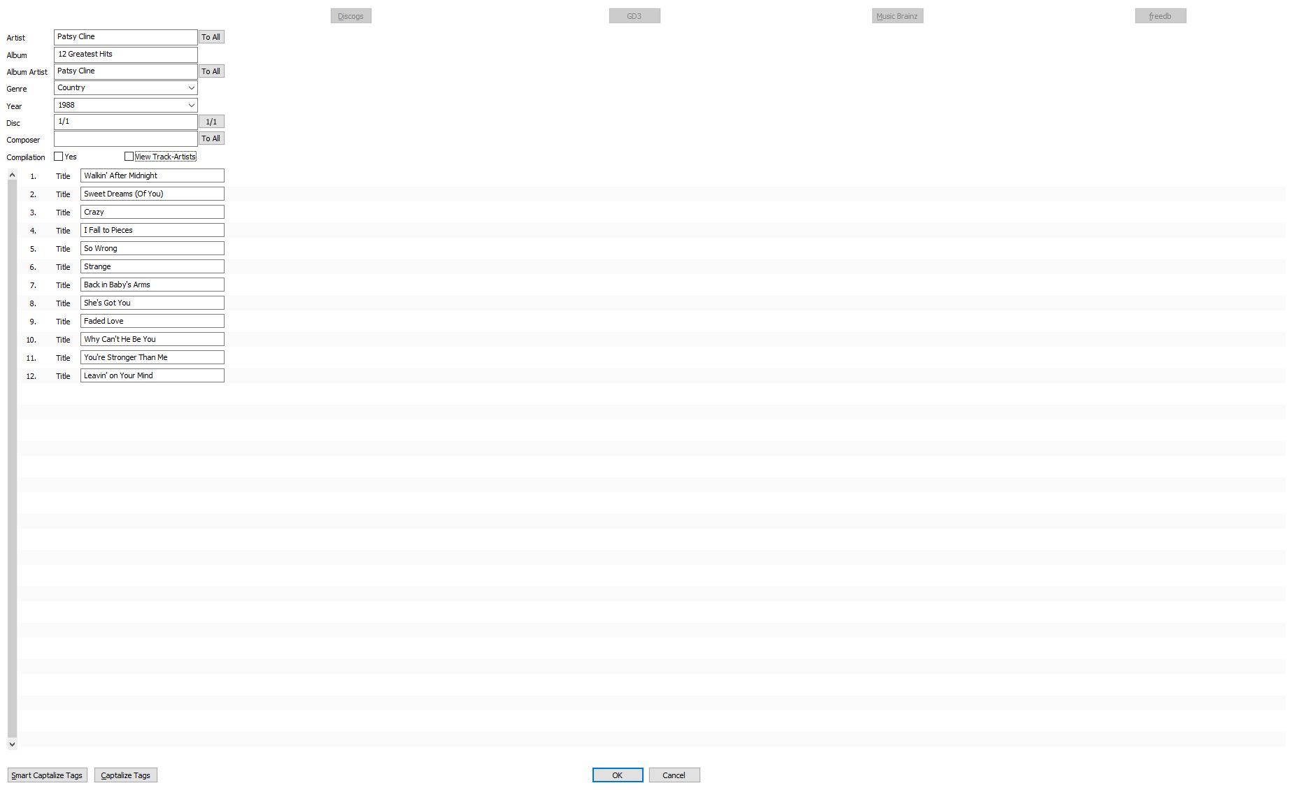 also the metadata buttons are grayed out. I cannot go to freedb to see if the album and tracks are there.