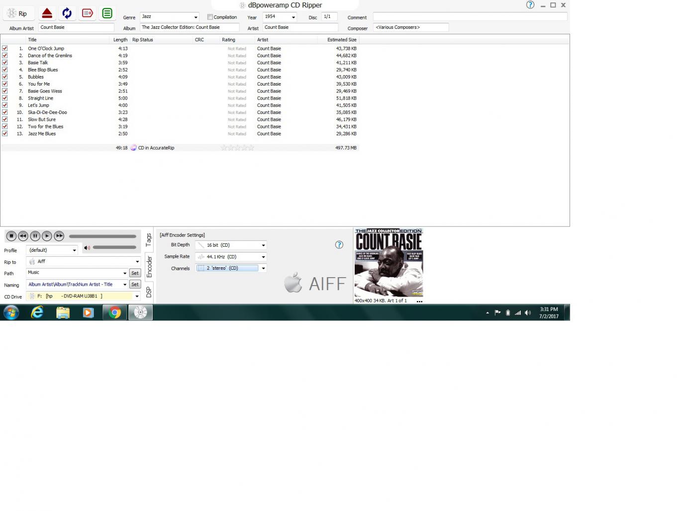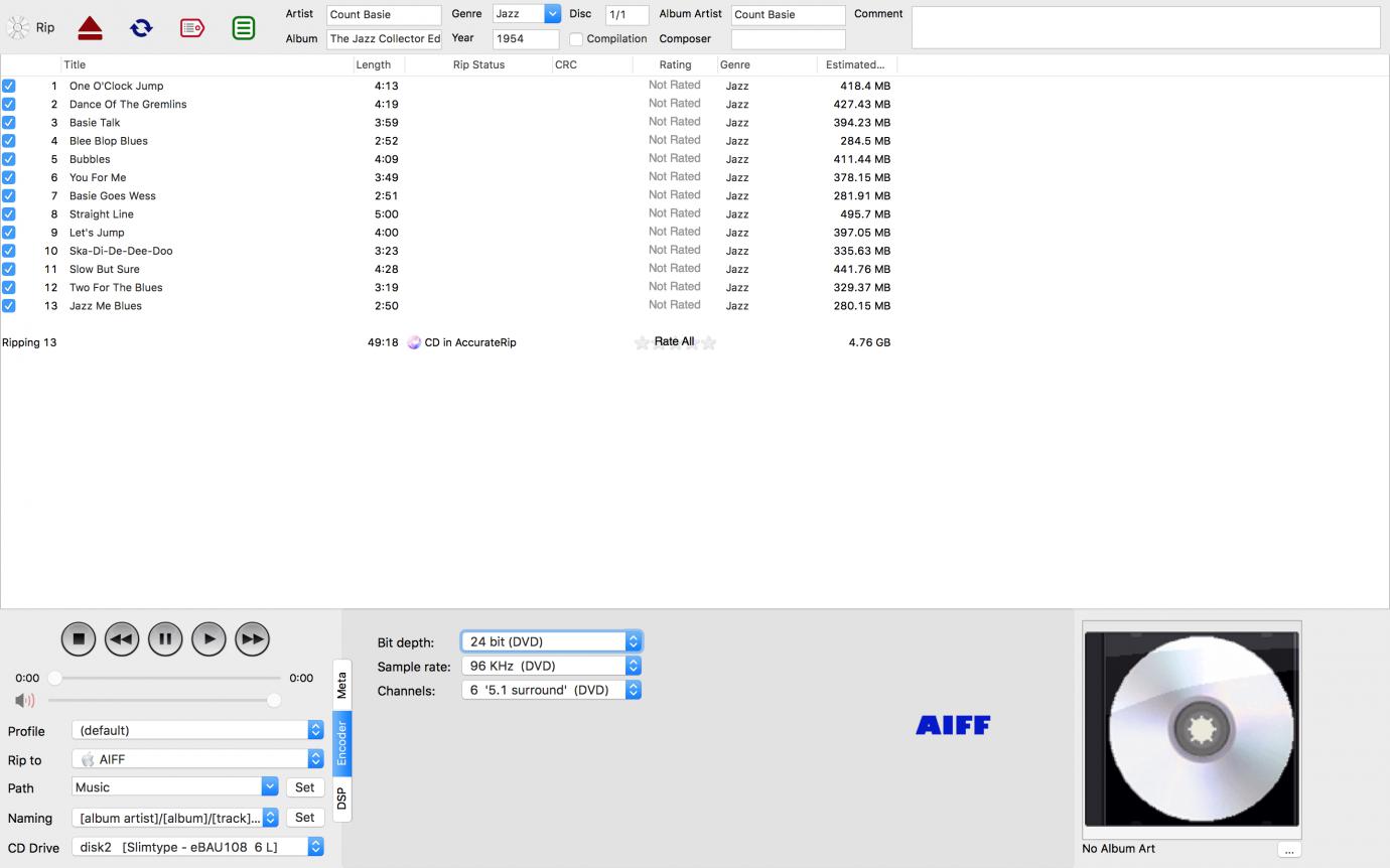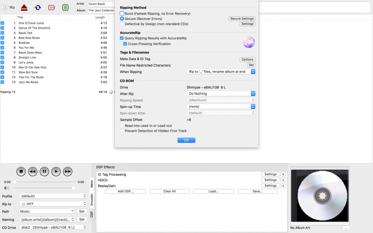 I have attached screen captures of both the apple mac and windows pc dBpoweramp windows for the different rip configurations.