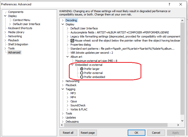 Firstly, it worked fine (ie. the artwork appeared in Foobar without me having to PLAY the tracks first) when - via PerfectTUNES - I replaced the artwork with an equivalent substitute image. But, the replacement replaced both disc-1 and disc-2 covers (making them both the same).