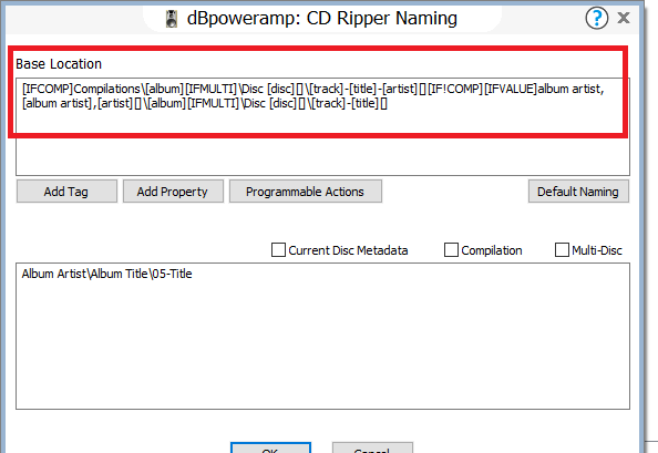 Hi, somewhere in this thread there is a NAMING STRING which relates to the maximum length of characters (ie 240 not 260), and also to correct handle compilations. I am not sure I have the correct one pasted into dBpa (on my home PC) as it should start with the max-characters: