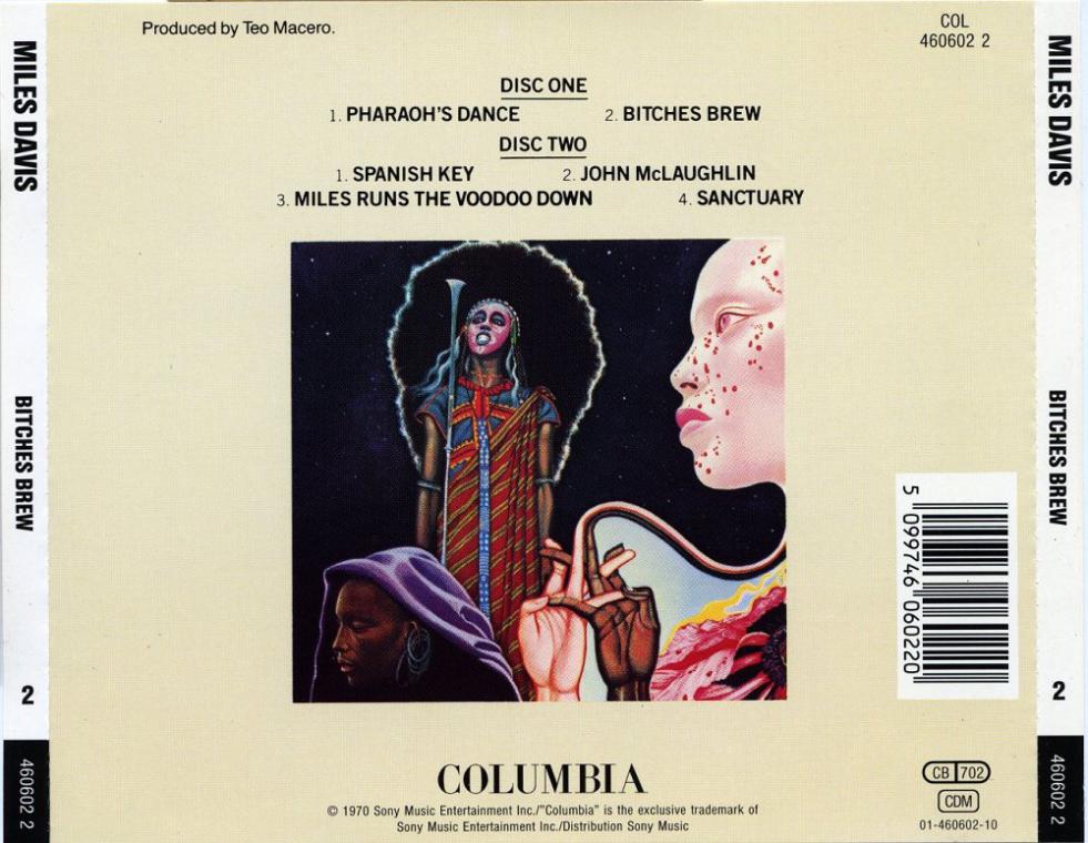 80 x mins to rip the original double-CD of "Bitches Brew" is good going. Actually, I remember there only being a few wrong items of info. on there (unlike many other CDs to date!). Here are the two arts I used for the original CD front and rear: