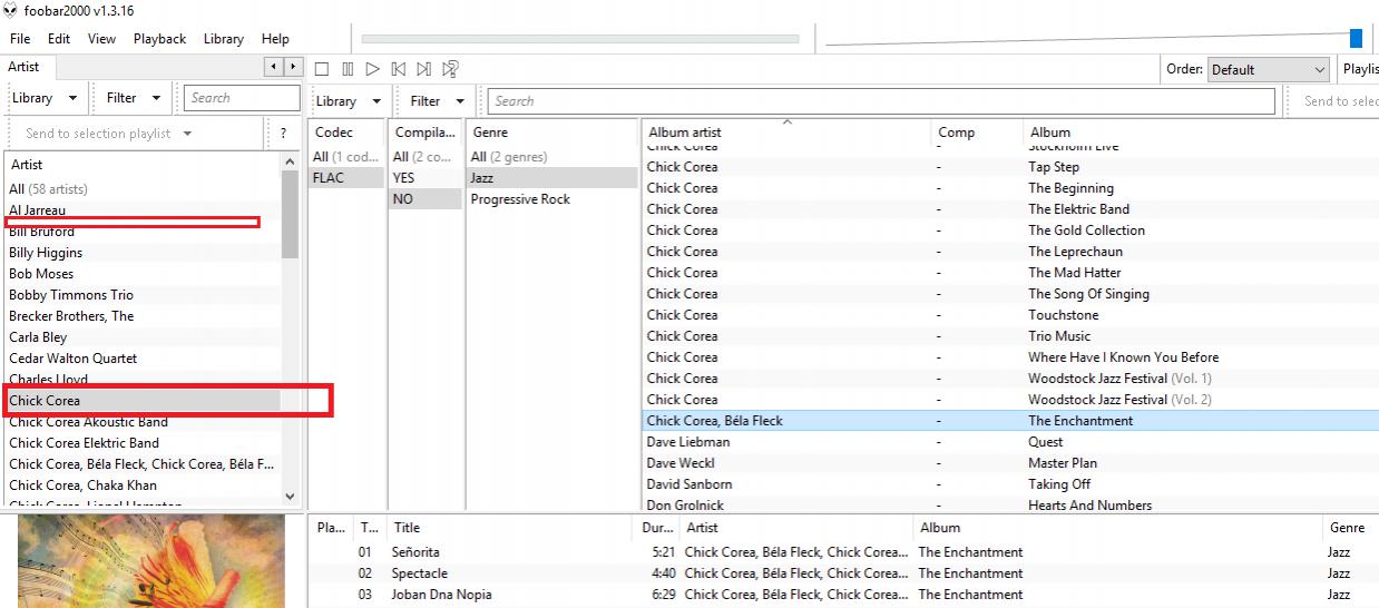Do you have the ripped CD album ("The Enchantment") placed in the ALBUM ARTIST folder of:Chick Corea, Bela Fleck, and Chick Corea, Bela Fleck.
