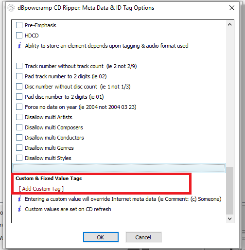 Is it possible, please, to SAVE ones self-created tags within dBpa? I use the same tagging scheme for each and every album now. And so, at the moment, I am manually adding each tag as I go along, but I would like to be able to SAVE such self-creations because they take time to configure for each rip.
