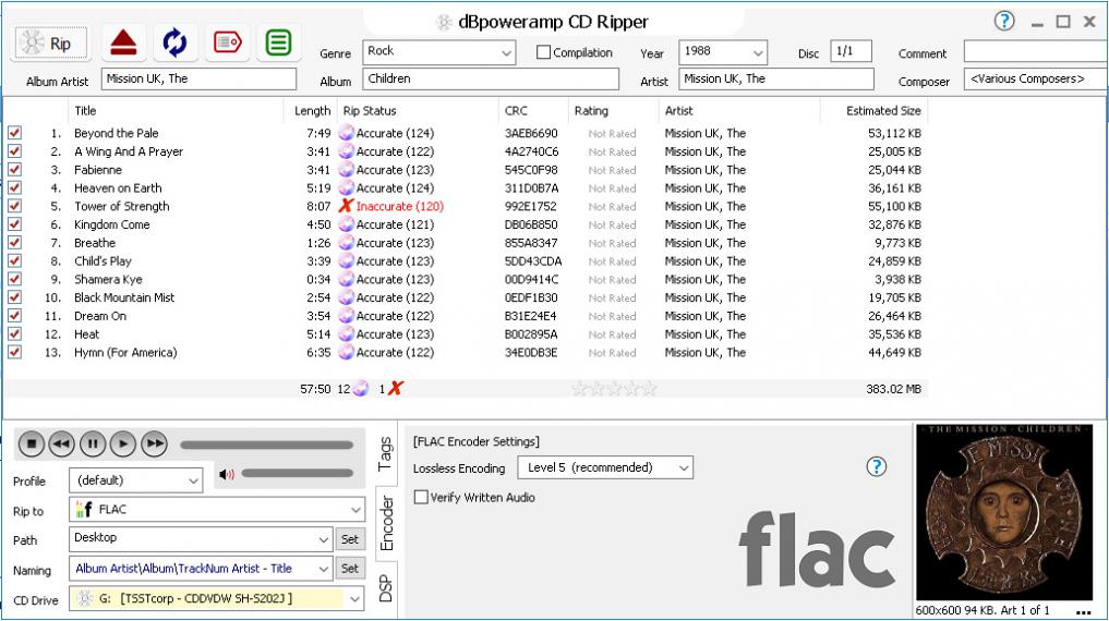 I have recently purchased dBpoweramp and ripped 6 CDs to FLAC.