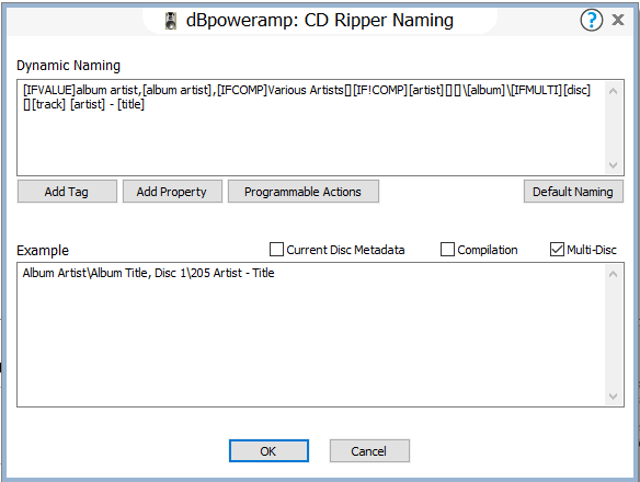 CD Ripper >> Green options button >> CD Ripper Options >> Metadata & ID Tag >> Multi-CD Add Disc to Album