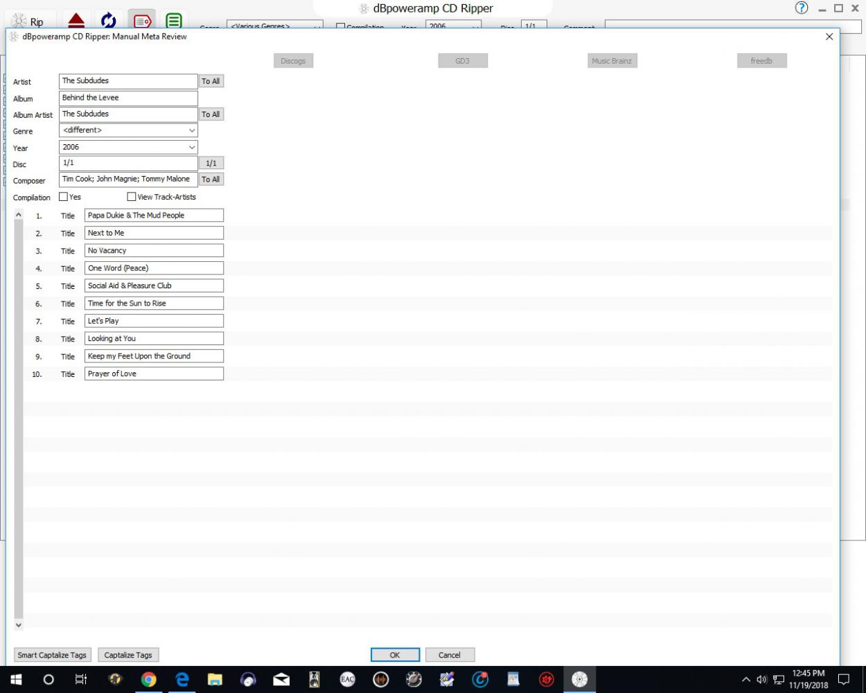 I have recently installed dbPoweramp onto a new win10 pc and have gotten everything working, except the metadata providers; Discogs, GD3, MusicBrains & freedb. They are not highlighted in the dBpoweramp CD Ripper: Manual Meta Review dialog. (Aside I do own GD3, however, I do not know where it's link should be.)