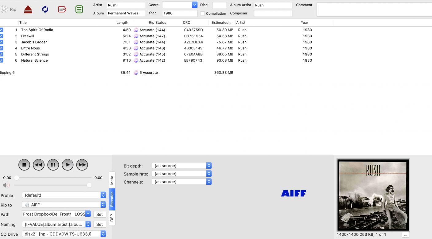 dBpa seems to recognise the CD because the interface has pre-filled with all of the stats & numbers that I assume are from the previous Mercury Atomic rip.