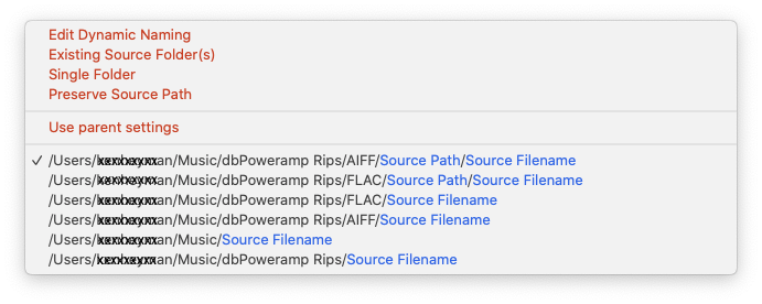 I keep ending up with Music>dbPoweramp>Group>Album>FLAC&AIFF (together in the same folder)