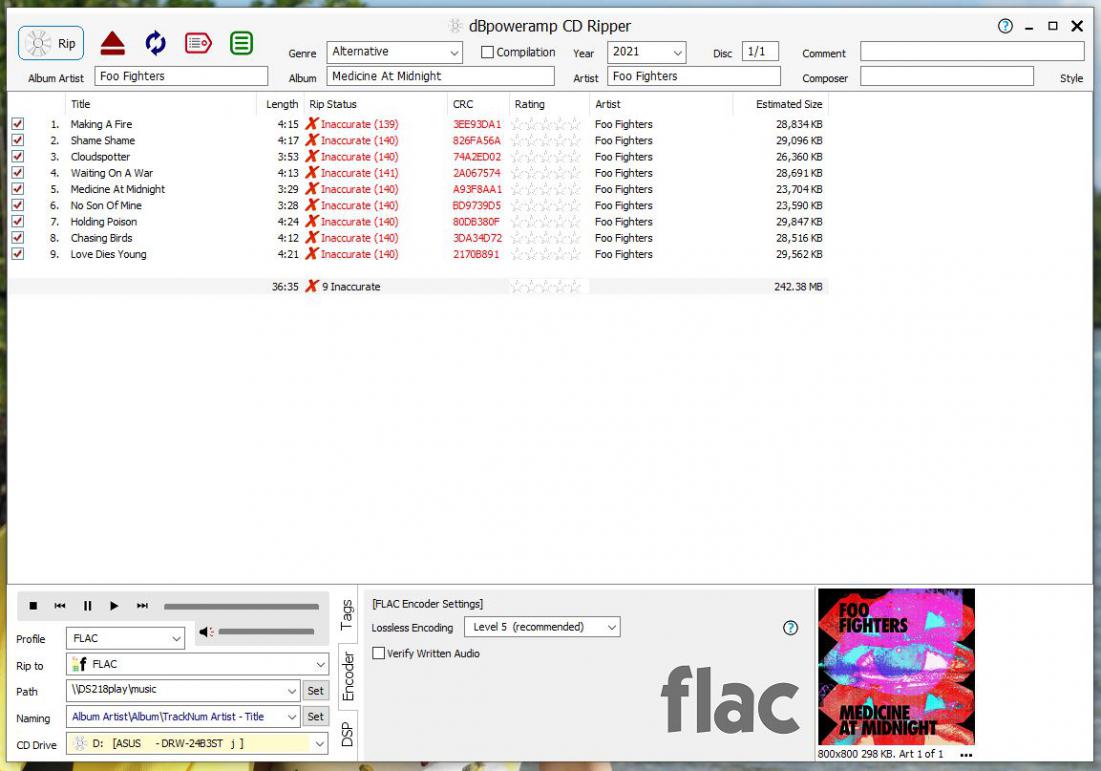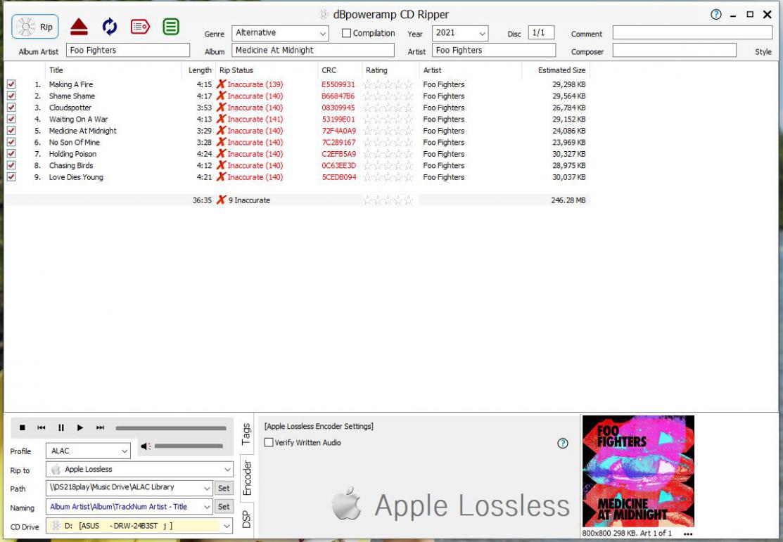 To test the drive I ripped the same Foo Fighters CD on Audiograbber Pro at 320kbps using the LAME codec.