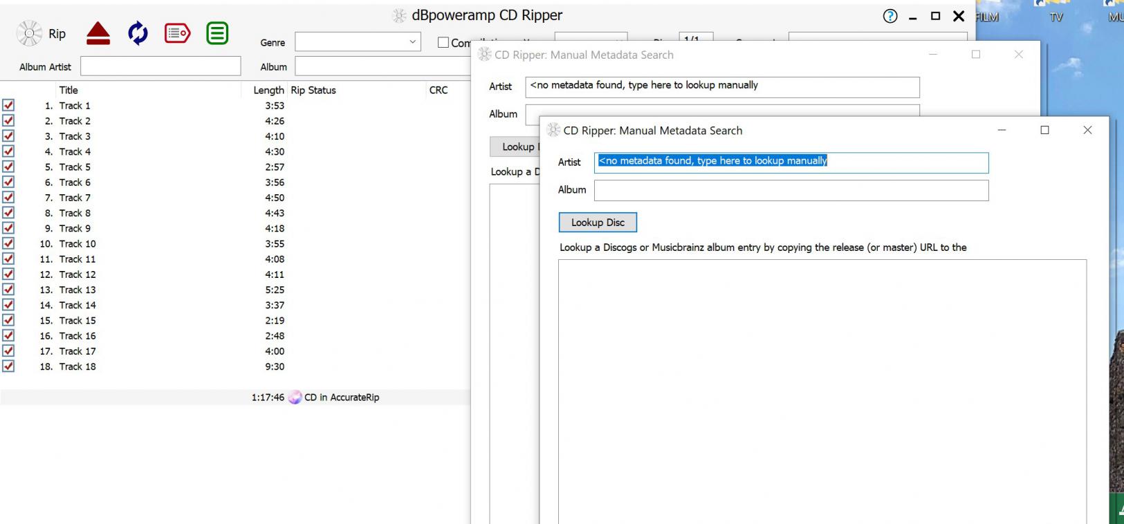 CD ripper reports no metadata available