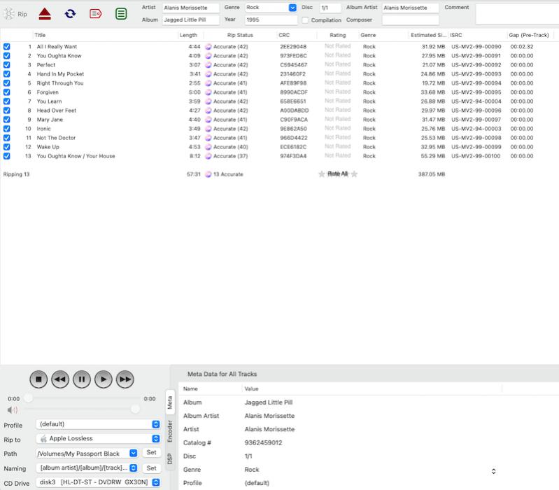 I have attached a screenshot comparing windows to osx. Same disk. Same CD drive. Same program settings. Am I missing something, or does osX just do things differently.