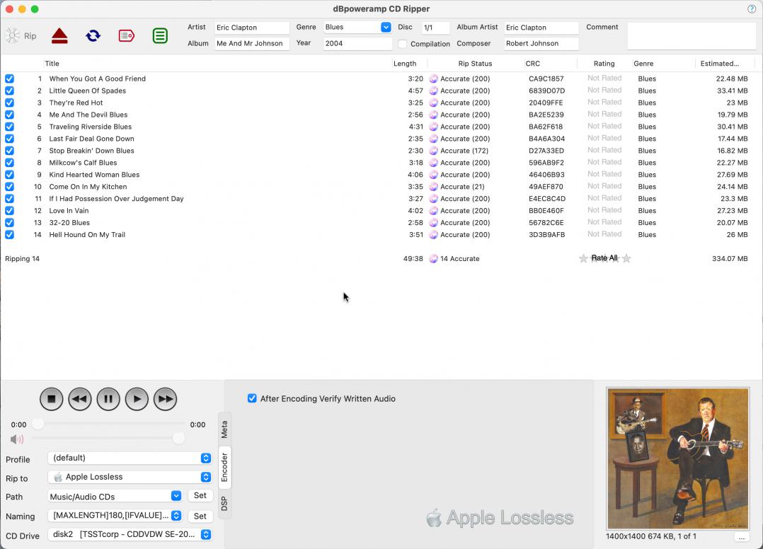 A few days ago I ripped Eric Clapton's "Me And Mr Johnson" CD. All tracks were accurately ripped, but one track had count 21, while all others had 200. What does it mean? That there is one track which has high reading error rate?