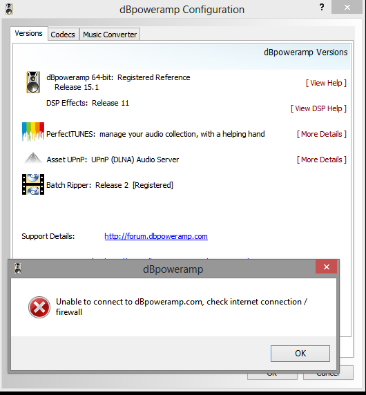 Re: MSG "Unable to connect to dBpoweramp.com....." when checking for Updates