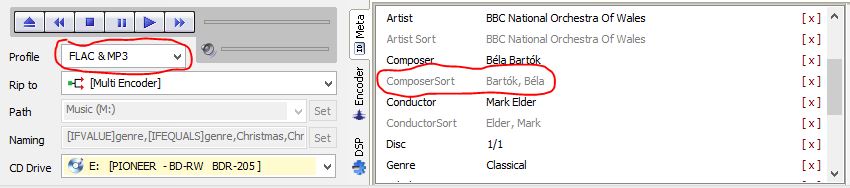 I think I've narrowed the issue down to the ComposerSort tag not being recognised under Multi Encoder but would appreciate some verification in case I'm missing something.