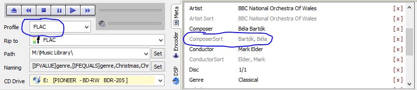 I have a naming string I've been using happily for a while which uses the ComposerSort tag to organise Classical music when ripping to FLAC. (R15.2 with latest updates)