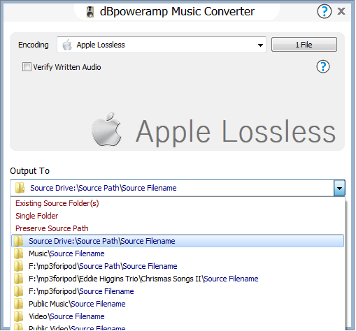 I rip all of my CDs to FLAC, and then I convert them to apple lossless for import into iTunes. I keep the two collections separate; the FLAC paths are all like F:\Music\Artist\Album\Song.flac. The apple lossless paths are F:\apple\Artist\Album\Song.m4a. All I used to do is copy the artist/album name from the Windows Explorer path bar and paste it in to the destination box of music converter, which remembered my last destination, from which I reused the prefix f:\apple\.