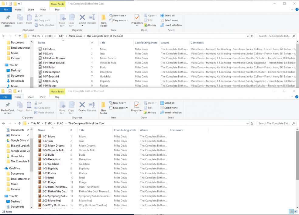 So that I fully understand, Windows 10 won't display the comments embedded in FLAC files, but those comments are in fact embedded in the FLAC files. Yet, Windows 10 will display the comments embedded in AAIF files. So if I have a need to convert the FLAC files back to AIFF, the non-displayed comments in the FLAC files will be displayed in the converted AIFF files?> for some reason File Explorer won't display them, as shown in the example you posted.