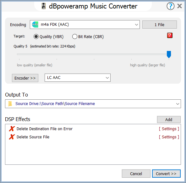 I have converted FLAC files to M4A using the latest available FDK AAC encoder. Here are the settings I used: