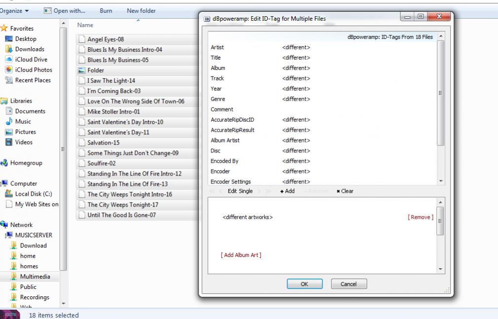 i recently had to install Db on another computer after my previous one died. I have followed the set up correctly (i think) but have one issue. Ripped cd's (to QNAP NAS) are showing and playing fine via my streamer. However, if i look at the files on my NAS via file explorer, they are shown in apphabetical order followed by a dash and the track number. No problem here as they are showing in track order on my streamer. However, if I look to edit the metadata via ID tag, the screen that comes up shows "different" to each heading (ie no album details) and if I try to edit any of the headings, after a period with the blue circle it tells me that editing is not possible. Can anyone tell me what I have done/am doing wrong.