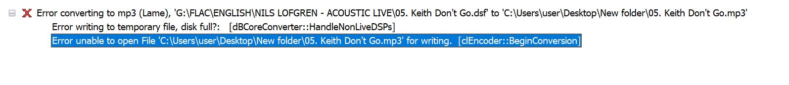 I am not able to convert any format of an audio into mp3 format and constantly getting error message.