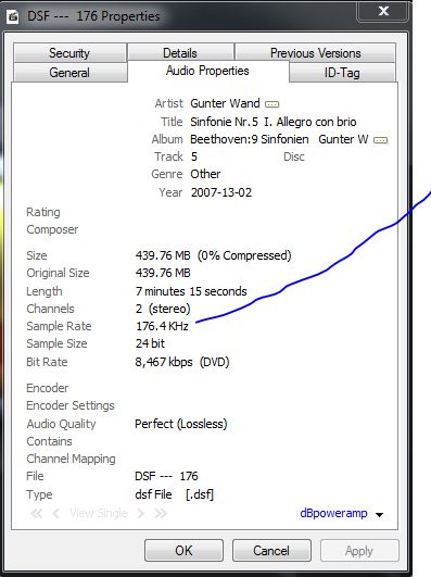 As you can see from my snapshot my original DSF file has a sample rate of 176.4 Khz.