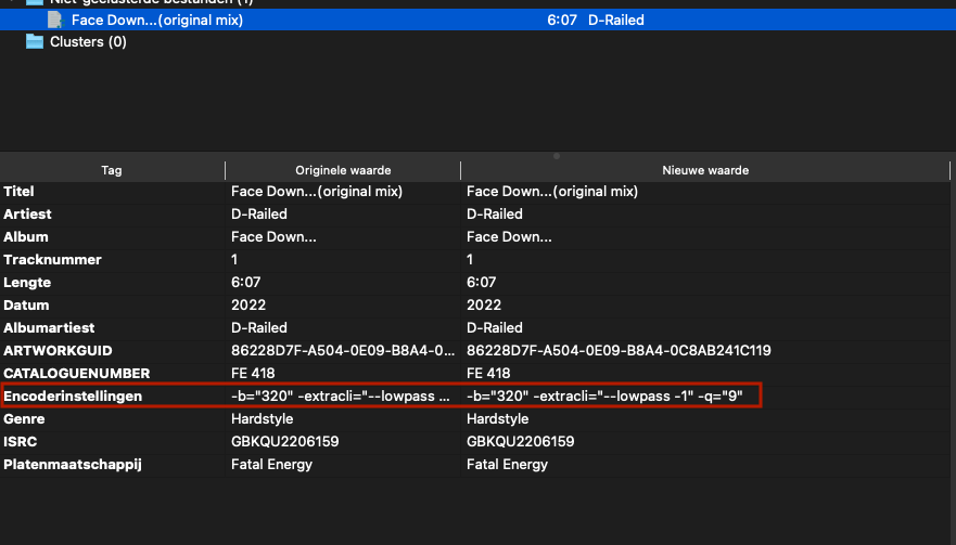 When i convert Lossless to MP3, the box 'Encode Settings' is showing the following tag: