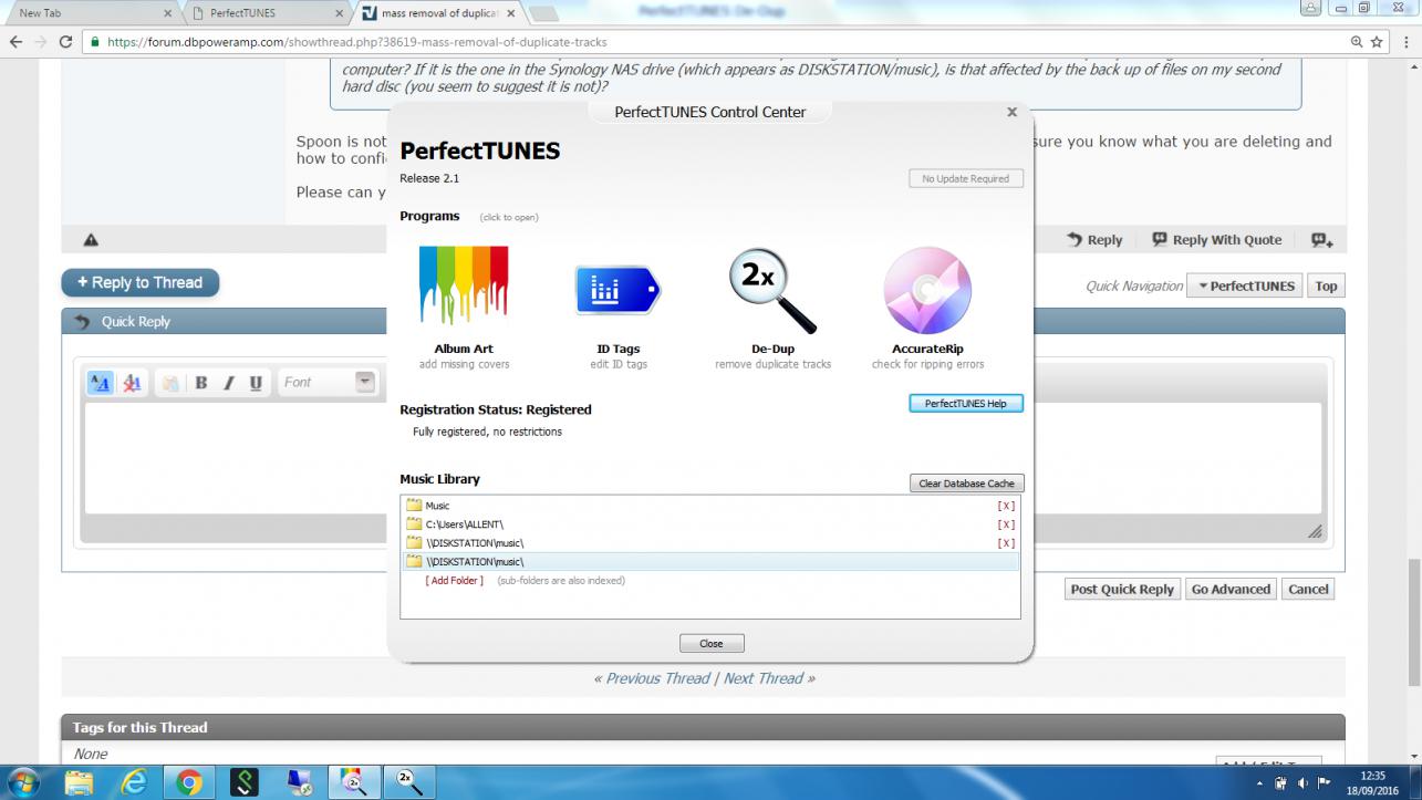 I have just run PerfectTunes for the first time. It has found a large number of duplicate tracks. Should I mass delete them? Does that mean that all the copies in the various windows are deleted, leaving one copy behind? Also, what happens with RAID backup? I was surprised that that there are so many duplicates. Is it because the back up versions are also being picked up (i.e those on the second hard disc in my NAS drive)?