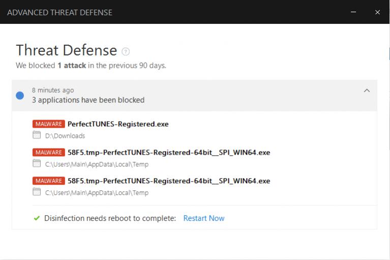 I just purchased PerfectTUNES, and I clicked on the download link in my browser. Upon completing the download, BitDefender detected a serious virus within the download. I've attached screenshots. I'm writing to report the incident and also request assistance with my purchase please.