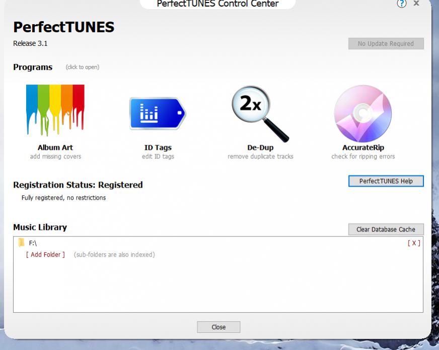 Perfect Tunes (just upgraded to 3.1) shows F: as folder or drive to scan,however there is not F: on my pc (windows 10), when I try to change or add a folder to index, it does not change from the F: