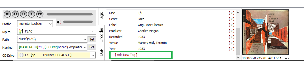 Do keep in mind that in my experience 99% of the time, the style information added was so wrong as to be laughable. Whoever included the style info had a bizarre interpretation of musical style (in my opinion). So if you use STYLE, you'll want to manually edit this tag upon ripping or afterwards with ID TAG editing. This is what monstorjazzlick does.