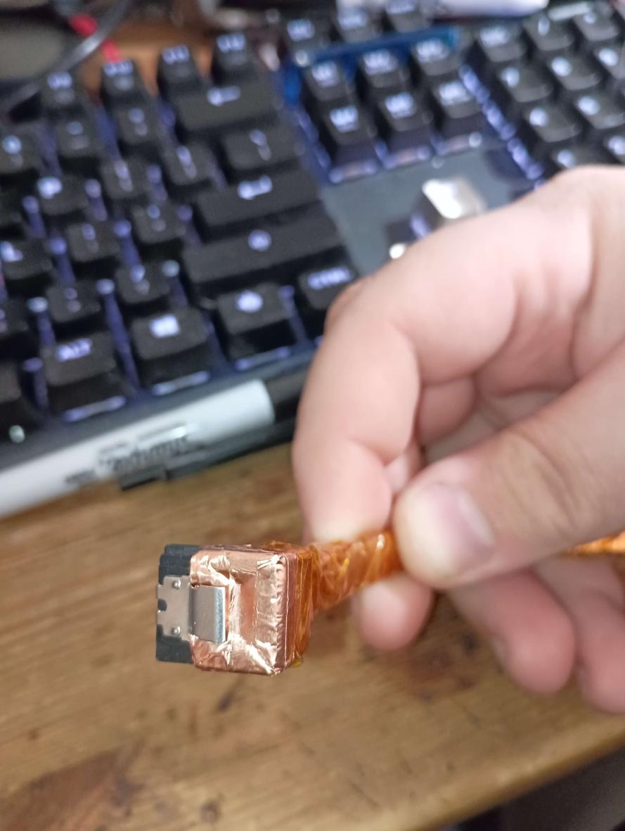 the last 2 things i did was wrap a SATA cable in copper tape, and cover that in kapton tape to protect the tape from nicks.