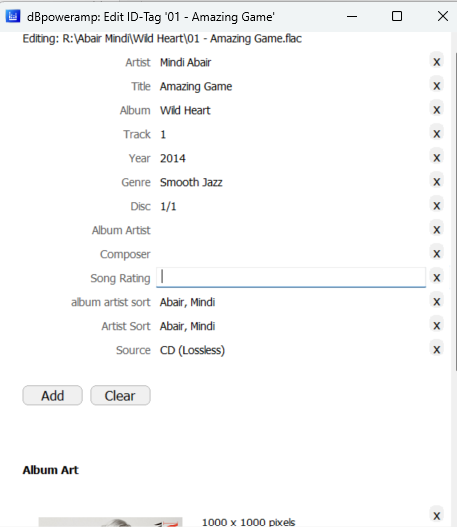 In Windows I am using File Explorer - right clicking the file - selecting dBpoweramp - Edit IDTags. I am having a few strange things happen.