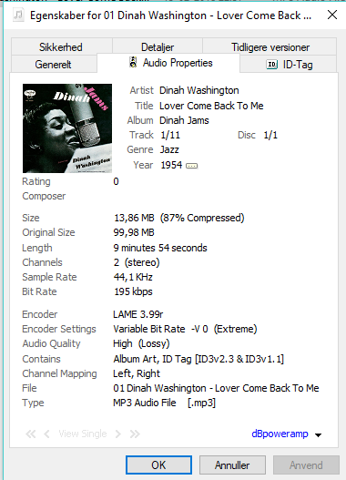 6. In Explorer I see, that the file has been changed with same timestamp as in Mediamonkey, BUT choosing audio properties (dbpoweramp) the rating shows nothing in the line 'rating'.
